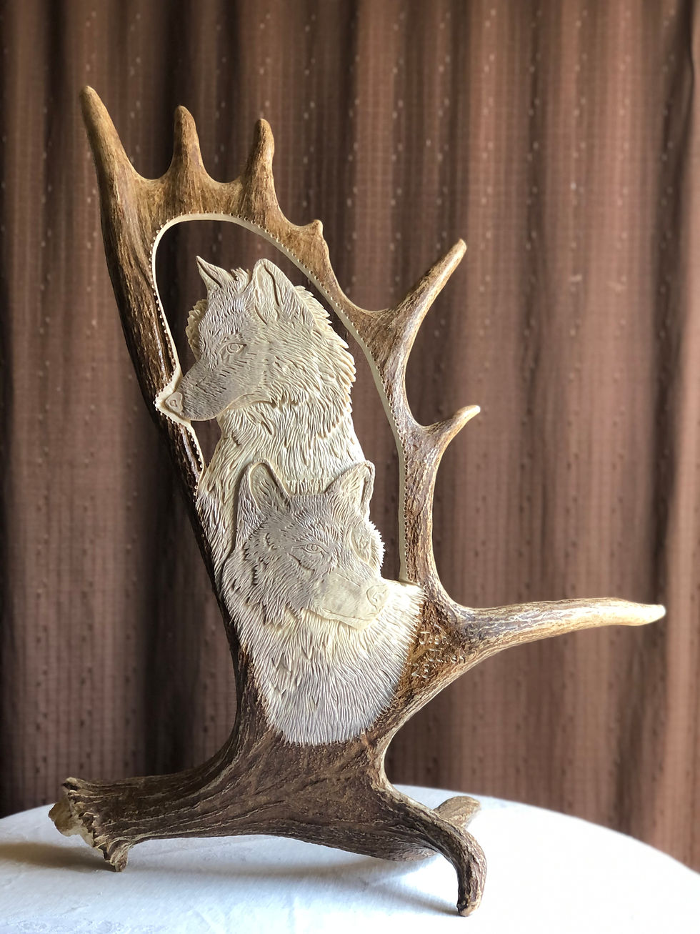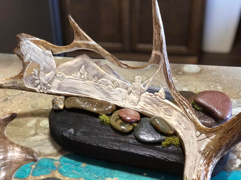 Choose your antler, then choose how you would like it displayed. Choose if you would like a base or not and what kind of theme you are interested in. I will customize each antler to tell your story whether it is about fishing, hunting, enjoying a lake view, about your favorite kind of wildlife, or about any memory that you may have. I am here to tell your story by carving it on an antler. I also make small functionable and fashionable antler art that is available.